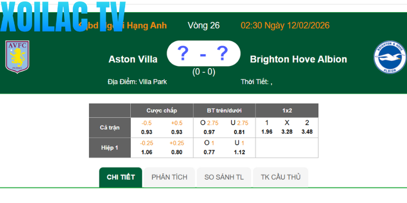 Trận cầu giữa Aston Villa và Brighton & Hove Albion, Xoilac hứa hẹn sẽ mang đến cho người hâm mộ những giây phút nghẹt thở và đầy cảm xúc. Đây là cơ hội để Villa khẳng định tham vọng của mình, đồng thời cũng là thử thách cực đại cho Brighton trong nỗ lực thoát khỏi cuộc khủng hoảng.