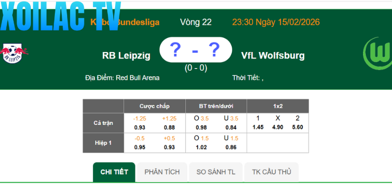 Trận cầu giữa RB Leipzig và Wolfsburg vào đêm 15/02 được Xoilac dự báo sẽ là sàn diễn riêng cho đội chủ nhà. Với sự vượt trội về mọi mặt, Leipzig khó có thể để tuột mất 3 điểm quý giá trước một Wolfsburg đang khủng hoảng trầm trọng.