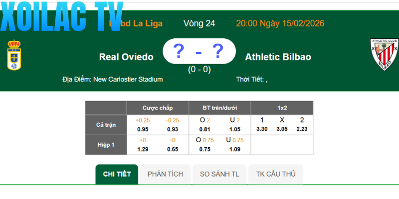 Trận đấu giữa Real Oviedo vs Athletic Club vào lúc 20:00 ngày 15/02, Xoilac chắc chắn sẽ là một bài kiểm tra khó khăn cho cả hai bên. Oviedo cần chứng minh chiến thắng trước Girona không phải là sự may mắn, còn Athletic Club phải khẳng định được chiều sâu đội hình trong bối cảnh quá tải.